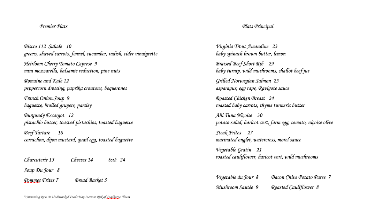 Nestled in the charming town of Shepherdstown, WV, Bistro 112 is a culinary gem that invites guests to indulge in a thoughtfully curated menu. Renowned for its friendly atmosphere and attentive service, this cozy restaurant offers a range of dishes that beautifully balance quality and price.